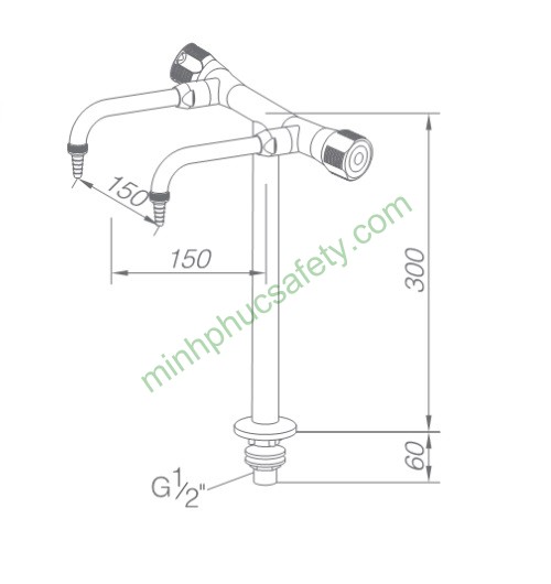 - Khoảng cách giữa 2 đầu vòi: 150mm